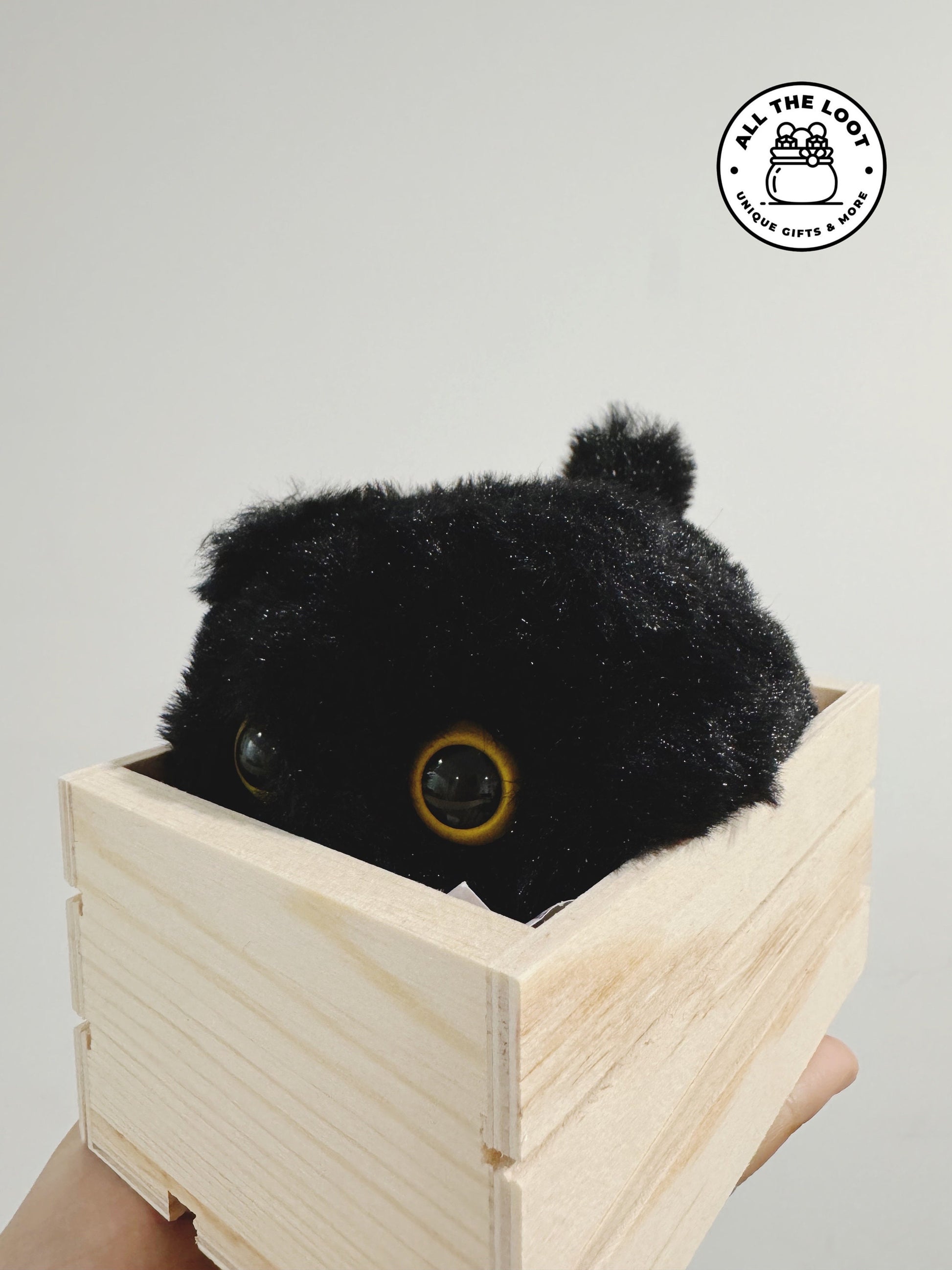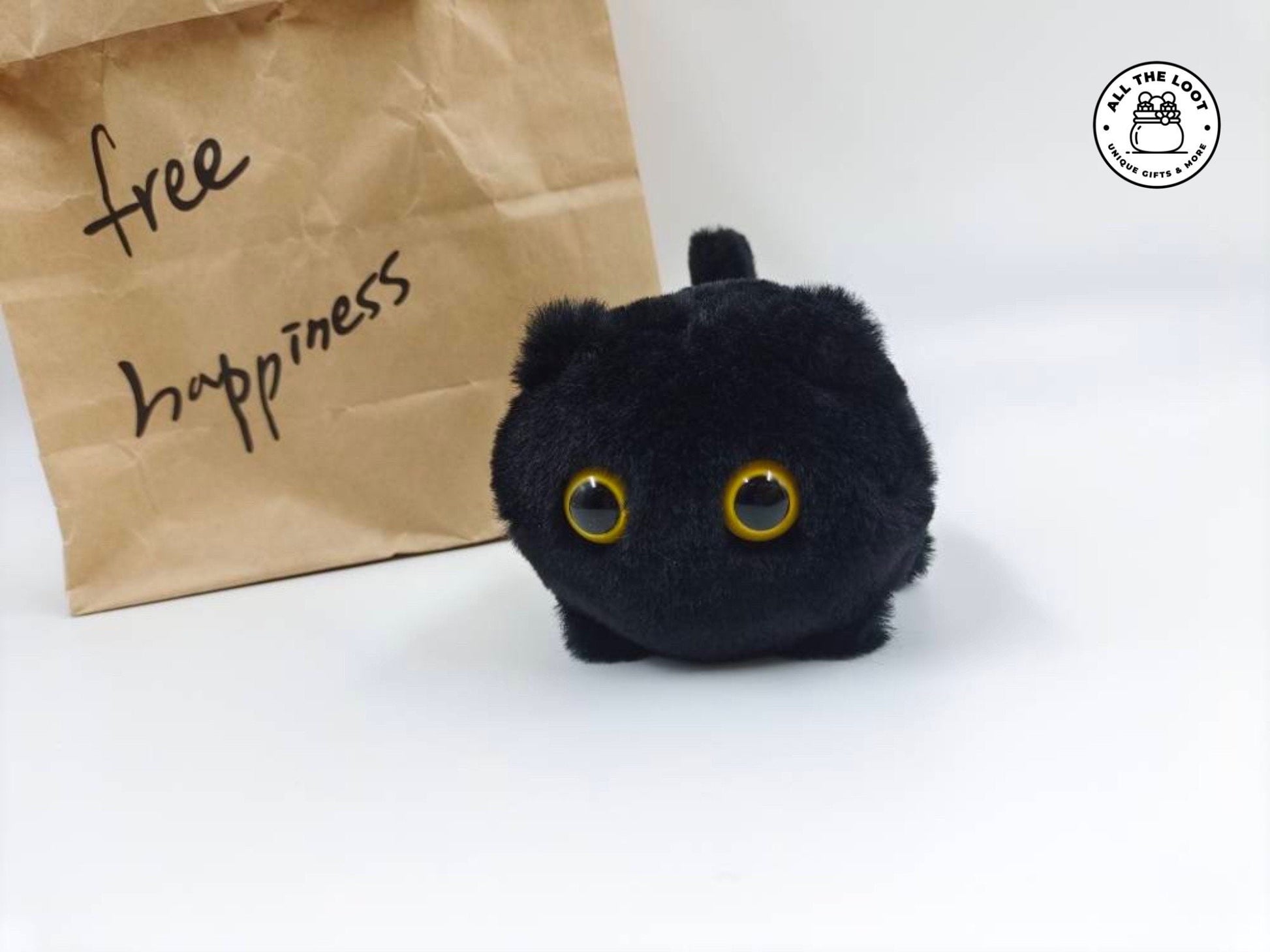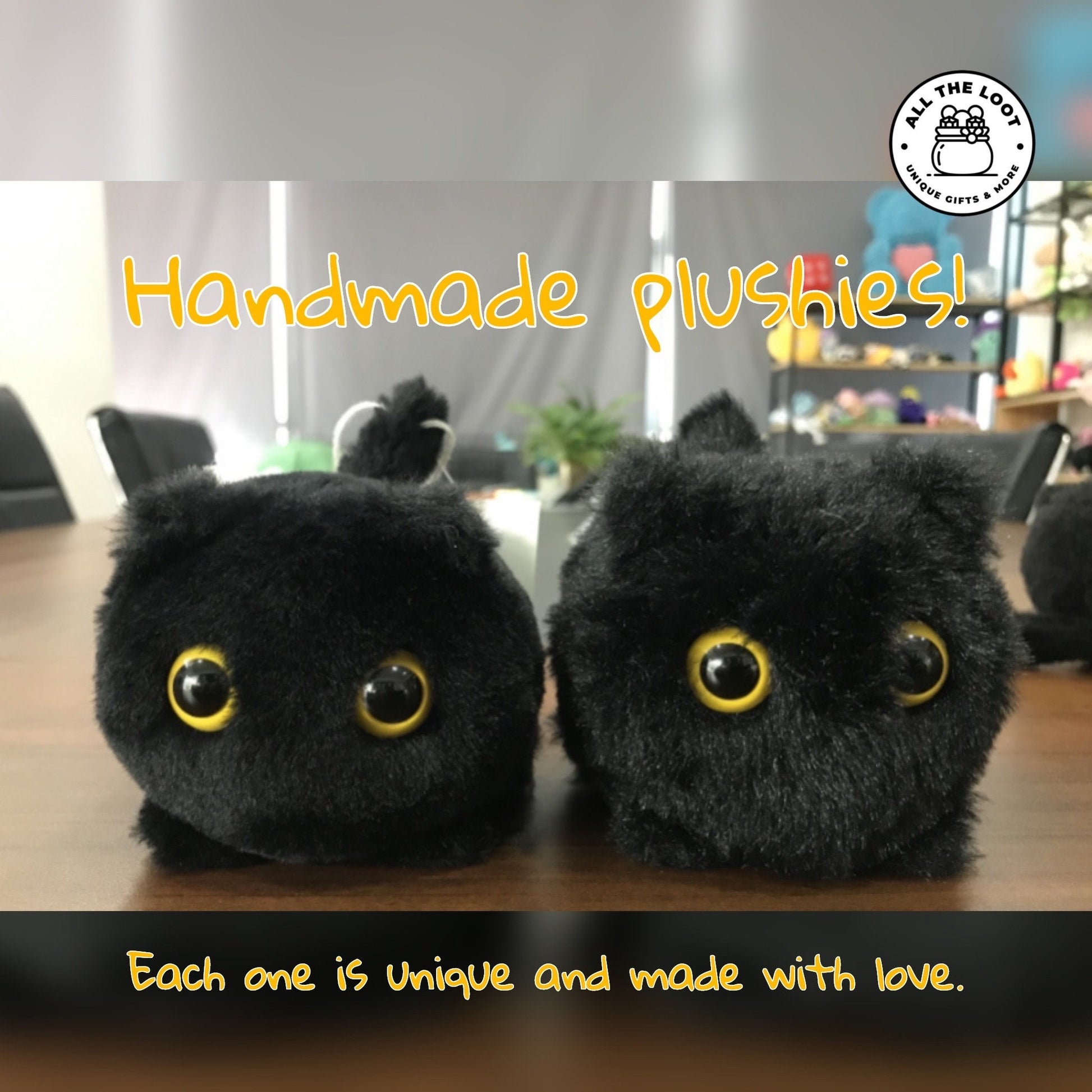 It’s our first ever hand sewn plushy! meet our adorable mini gremlin-y kitty! This cutie little cat is handmade with love, perfect for adding a touch of whimsy to your home decor. Also makes a wonderful desk companion. With its big yellow eyes and tiny size, it's sure to haunt your heart with cuteness. A must-have for any plush collector or cat lover! 🧶