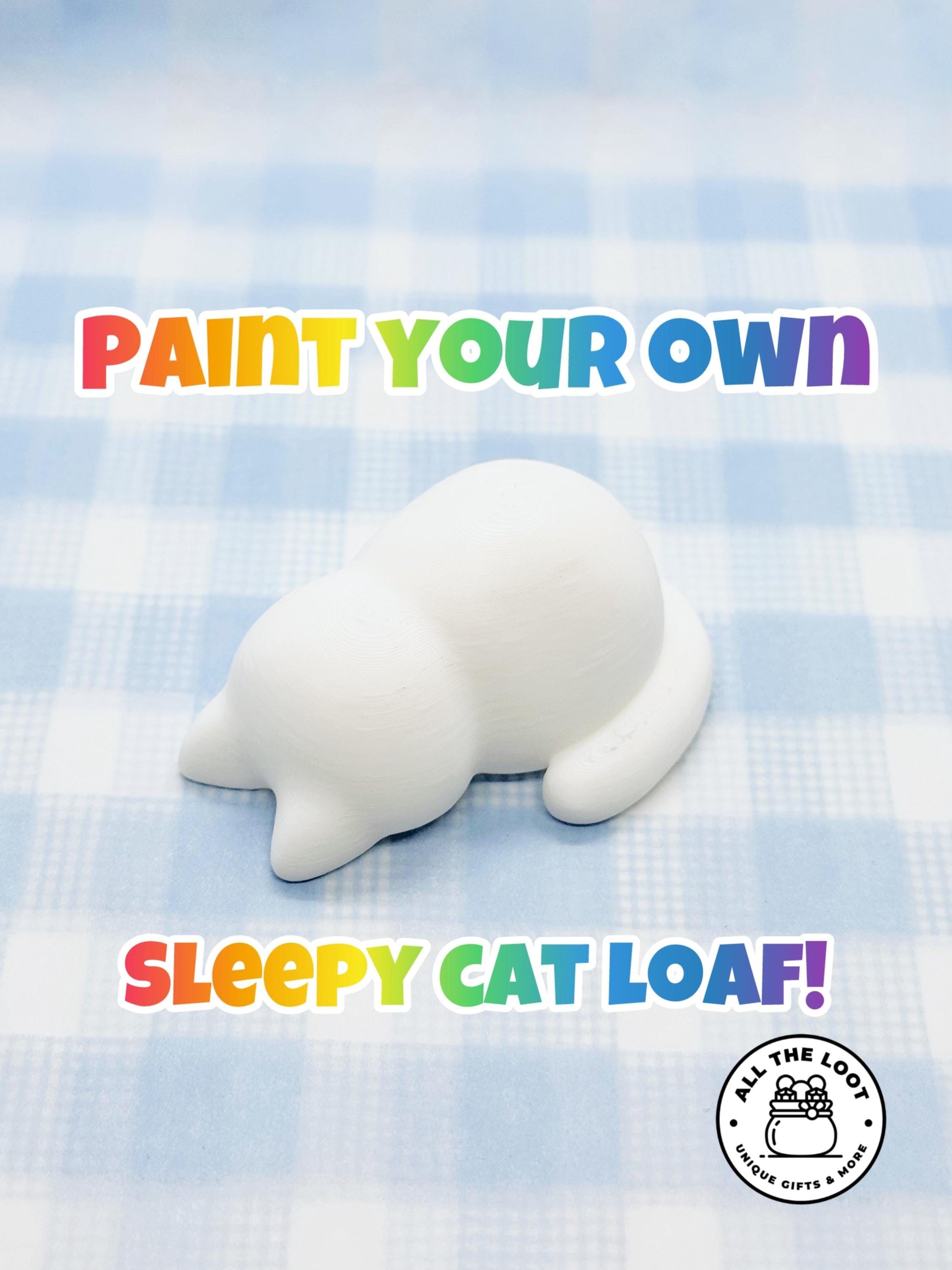 Paint Your Own Sleepy Cat Loaf – 3D Printed Figurine