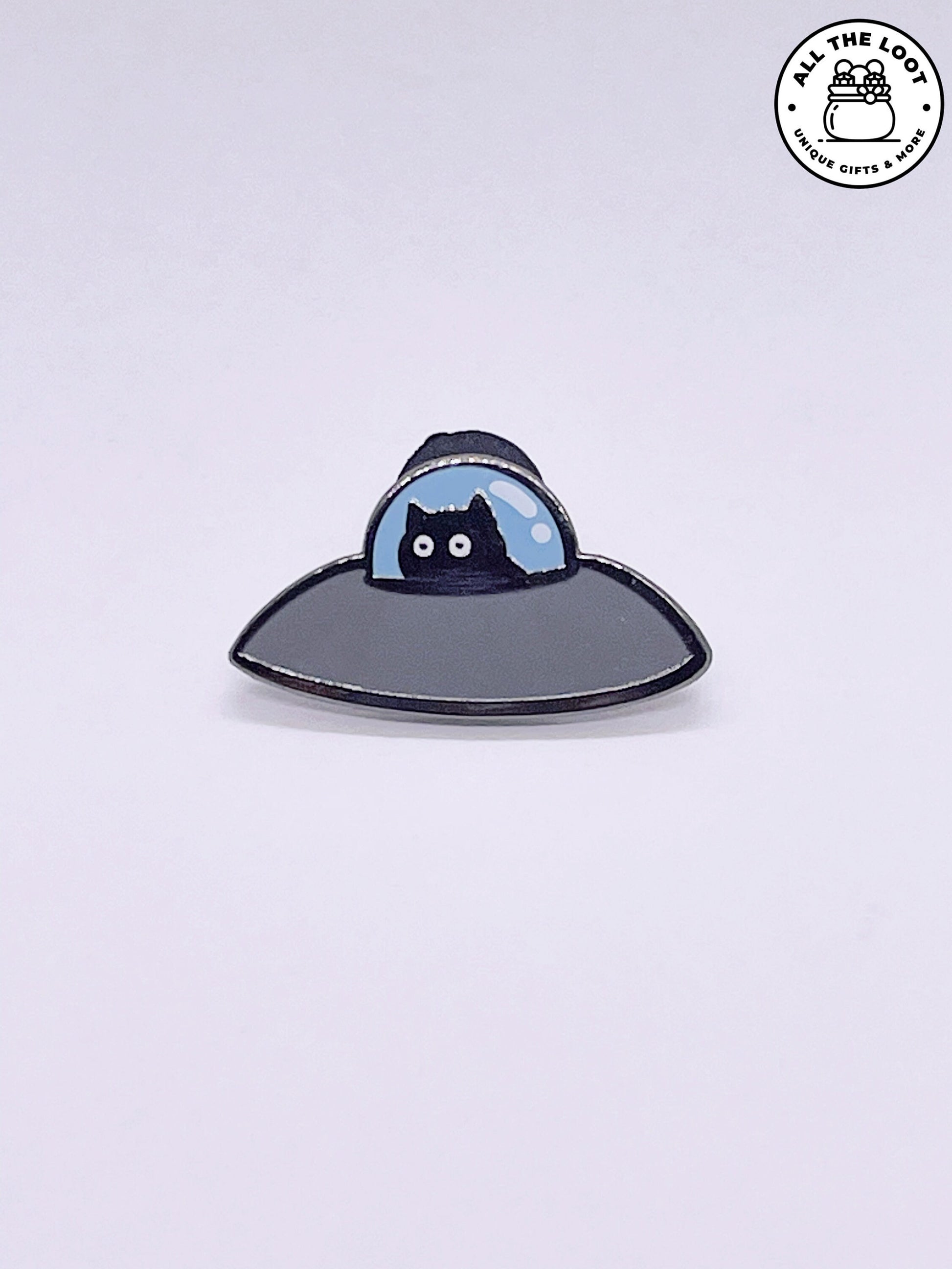 Made with high-quality materials and a touch of intergalactic whimsy, this pin is guaranteed to make your cat-loving friends and fellow alien enthusiasts giggle with delight. So buckle up and join the interstellar feline crew with this out-of-this-world "Cosmic Catnip" pin! It's the accessory for cat lovers who are ready to take their style to infinity and beyond! Meow-ve over, ordinary pins, this UFO cat is ready to abduct hearts and unleash cosmic cuteness wherever it goes!